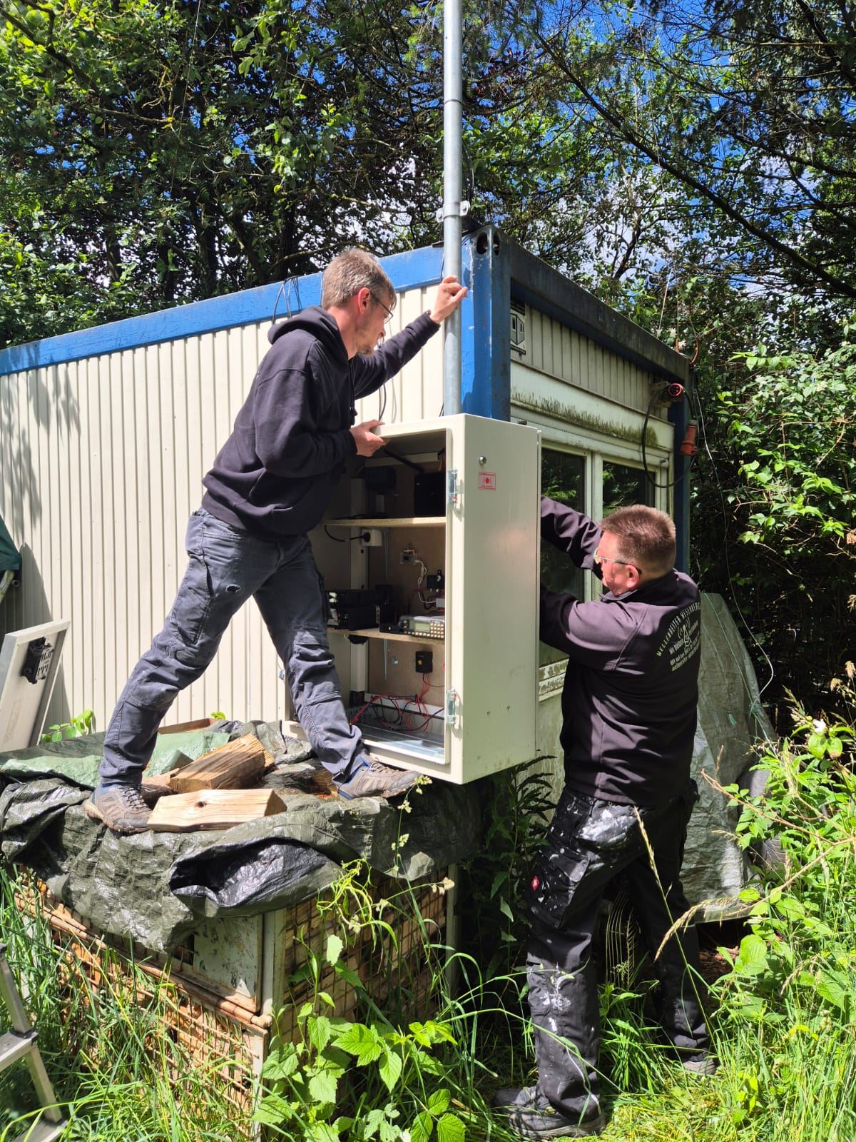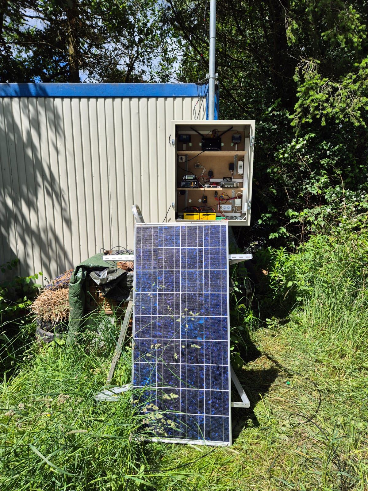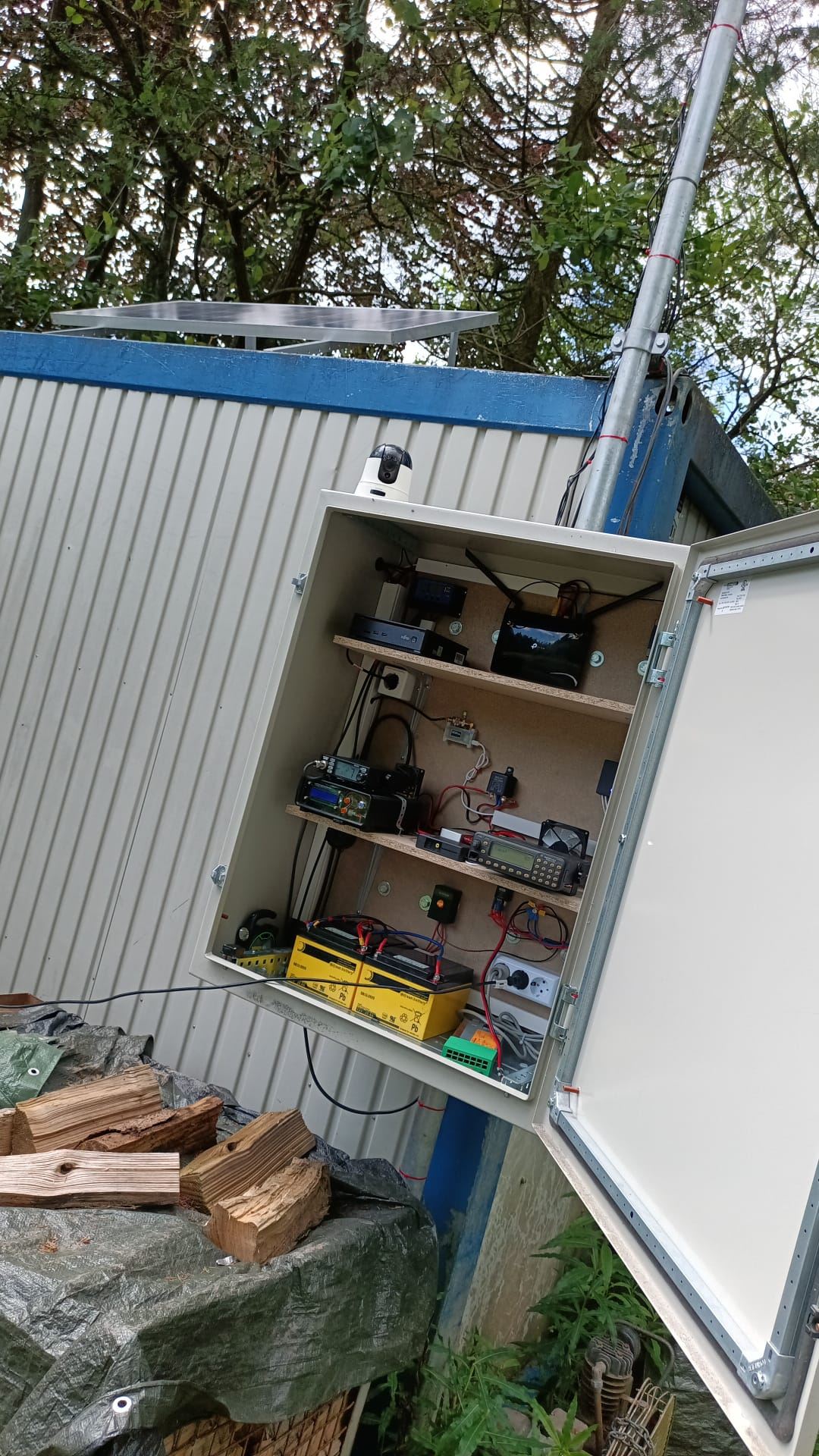 Die gesamte Anlage ist Fernbedienbar und verfügt über eine Ausfallsicherung in Form von zwei Batterien, Solarzelle und Laderegler.