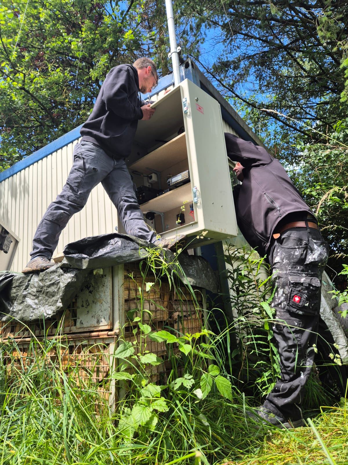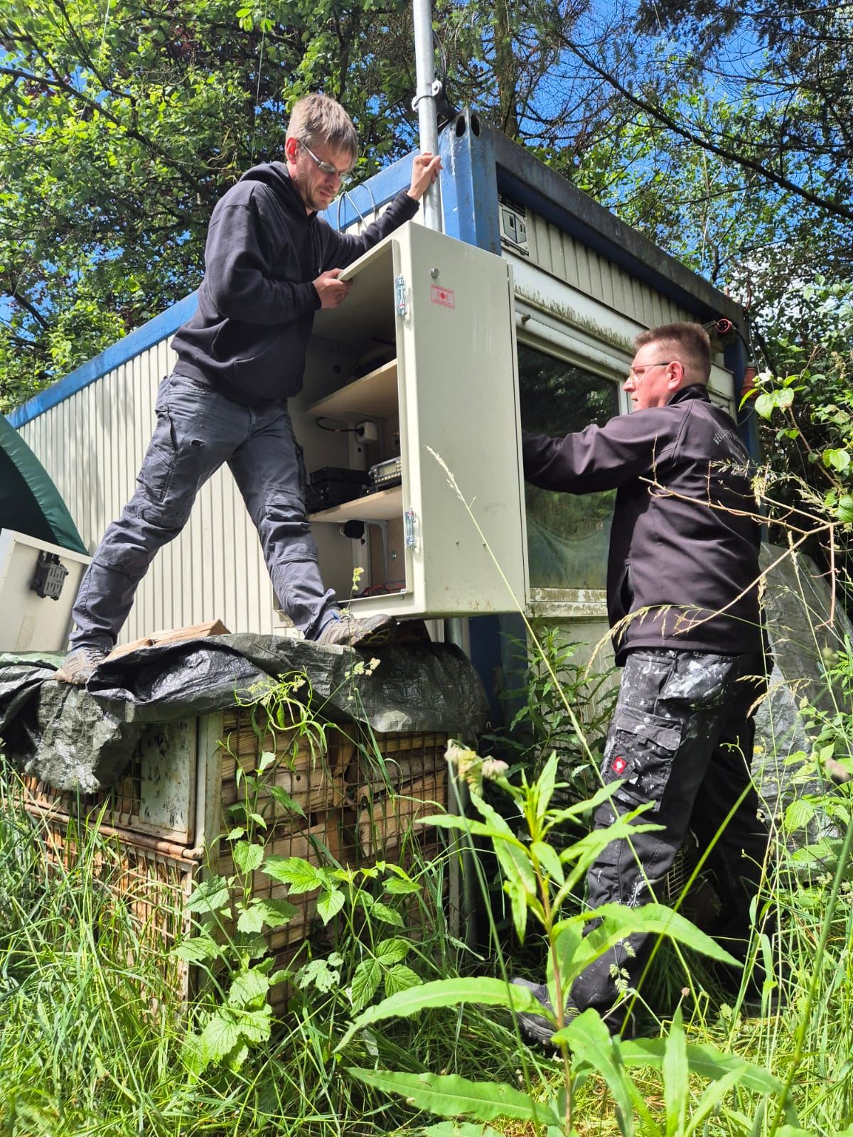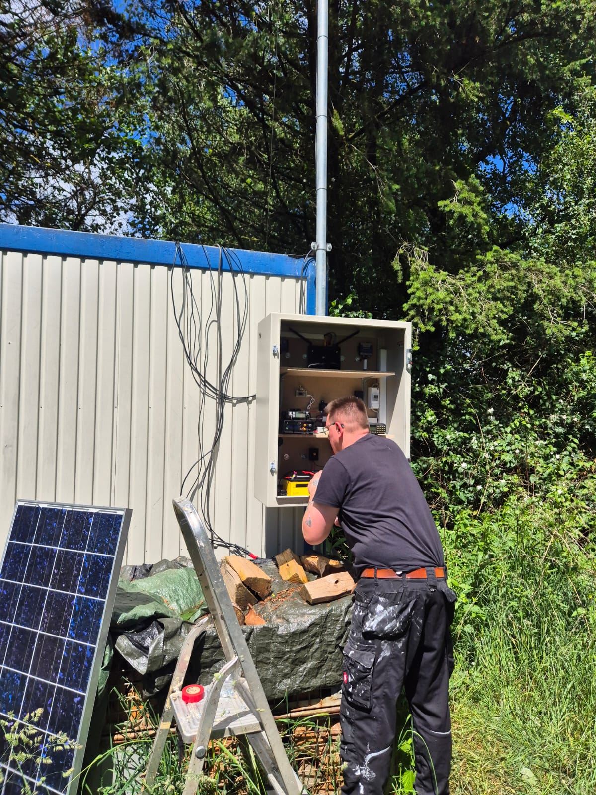 Die gesamte Anlage ist Fernbedienbar und verfügt über eine Ausfallsicherung in Form von zwei Batterien, Solarzelle und Laderegler.